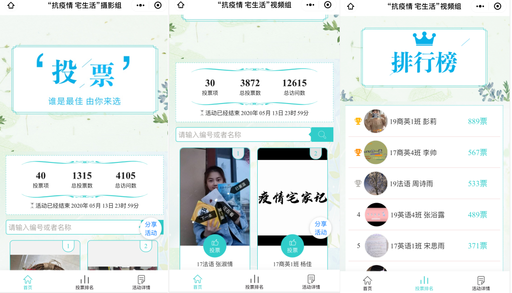 为展现太阳成集团122ccvip师生积极面对疫情、参与疫情防控、乐观生活、努力工作和学习等积极向上的生活场景,太阳成集团122ccvip于4月至5月举行了“抗疫情,宅生活”摄影、短视频比赛。
