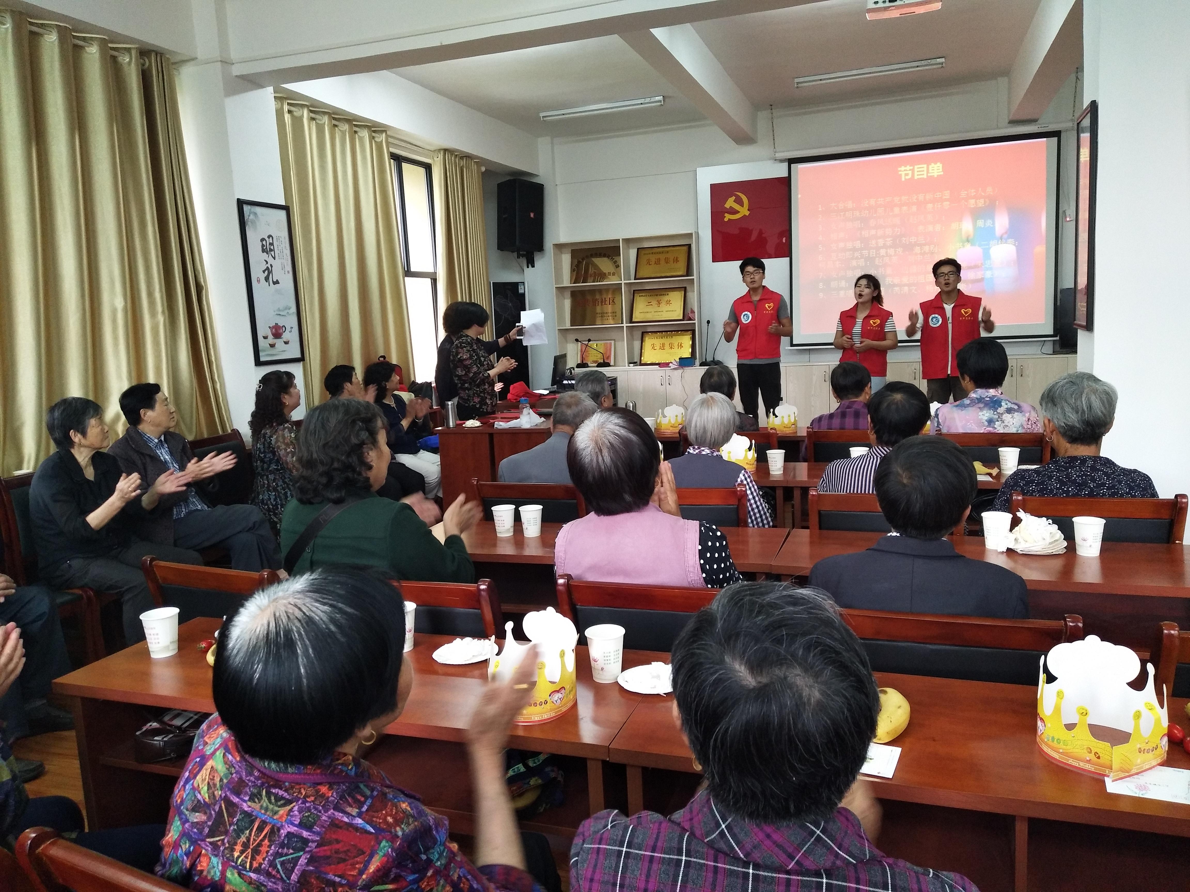 5月11日下午,杜坞社区为辖区内高龄、空巢、独居、以及失能、半失能老人们举办了一场“集体生日会”活动,弥补因无子女或者子女不在身边等原因而无法过生日的缺憾。获知此消息,公司党总支积极组织党员和入党积极分子参与活动。活动中,他们搀扶老人、安排坐位、倒水、拖地、和老人聊天,还带去了大合唱、相声、诗朗诵等丰富多彩的节目。大家热情、细心、周到的服务和精彩的节目为老人们带去了快乐,让他们度过了一个难忘的生日。我们的党员和入党积极分子也得到了老人们和社区干部的肯定。