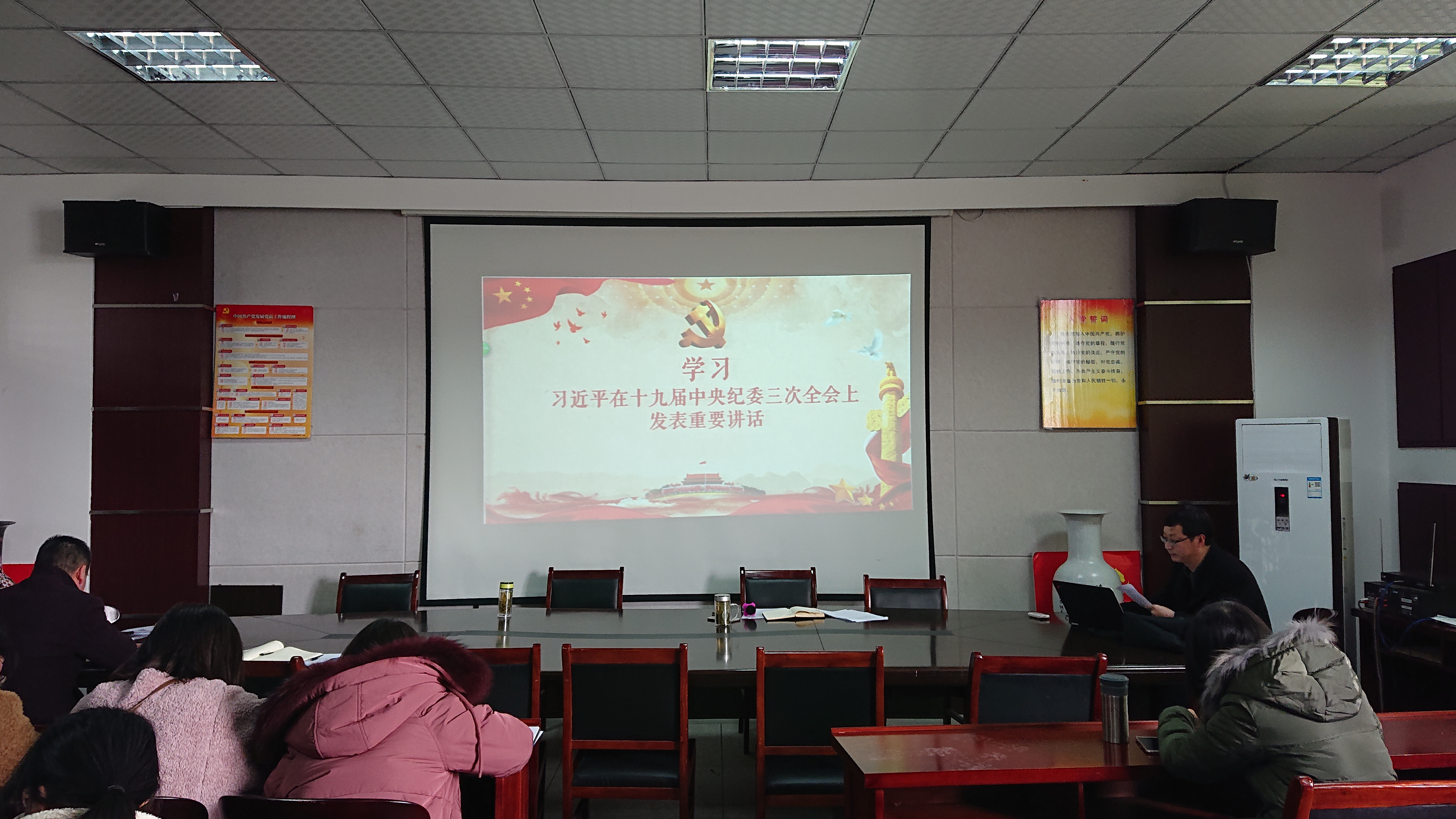 随后,张乐民围绕“习近平在中纪委十九届三中全会上的讲话”给全体党员上课一堂党课。他要求全体党员要深刻领会习近平总书记重要讲话精神,要按照讲话中提出的“五个必须”和“六项任务”,主动担当作为,敢于作为,认真履职尽责。