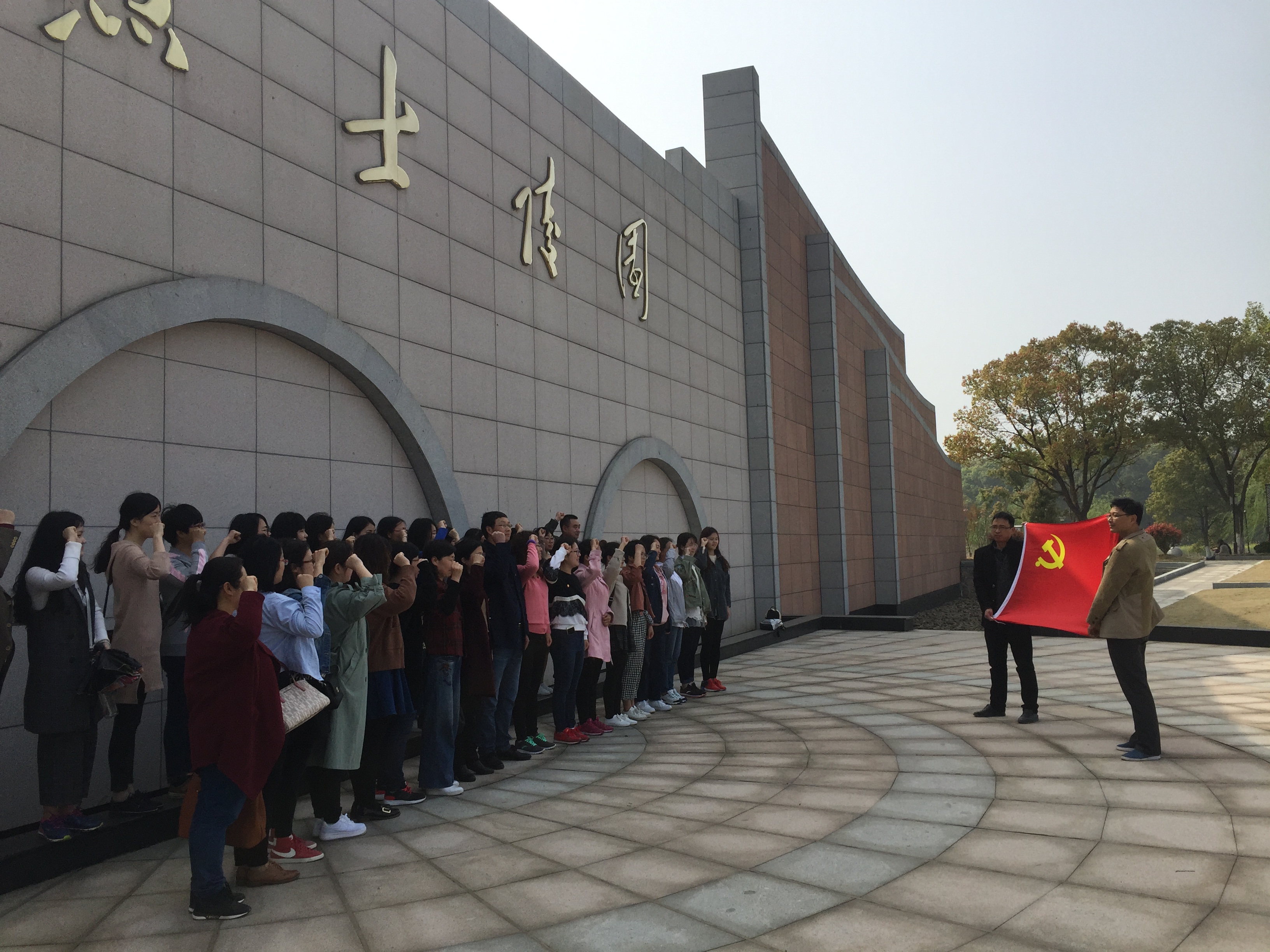 在池州革命烈士陵园前,所有党员面对党旗,高举右手,举行了庄严的重温入党誓词仪式。在革命烈士纪念碑前,全体默哀并向革命烈士鞠躬,表达了对革命先烈的深切缅怀之情和继承遗志、振兴中华的决心。最后,大家还参观了池州烈士纪念馆和国防教育纪念馆。通过观看展板、烈士遗物、革命文物,让我们再一次感受到了革命先烈在艰苦卓绝的岁月里所表现出来的坚贞不屈和顽强斗志、以及新中国成立以来取得成就,深深地感动。
