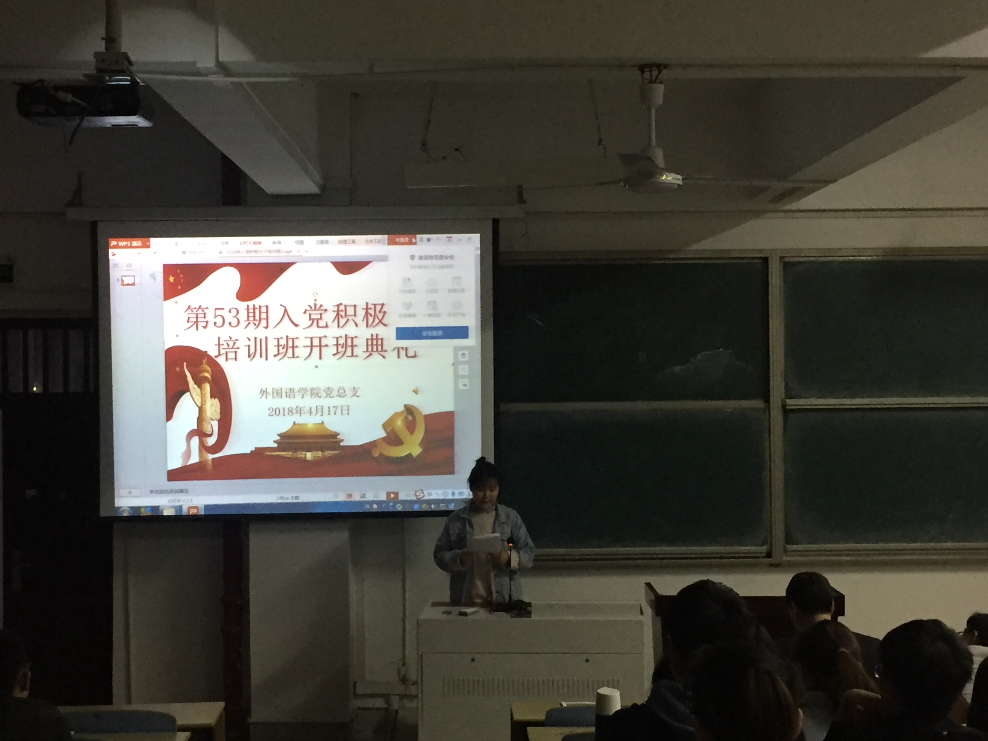 为提高入党积极分子对党的认识,明确党员的基本权利和义务、端正入党动机,4月17日晚,太阳成集团122ccvip在博学楼3楼阶梯教室举行第53期入党积极分子培训班开班式。出席此次开班式的有公司党总支全体委员、员工支部书记、来自23个班级及后勤管理与基建处的96名学员。开班式由公司党总支副书记冯淑慧主持。