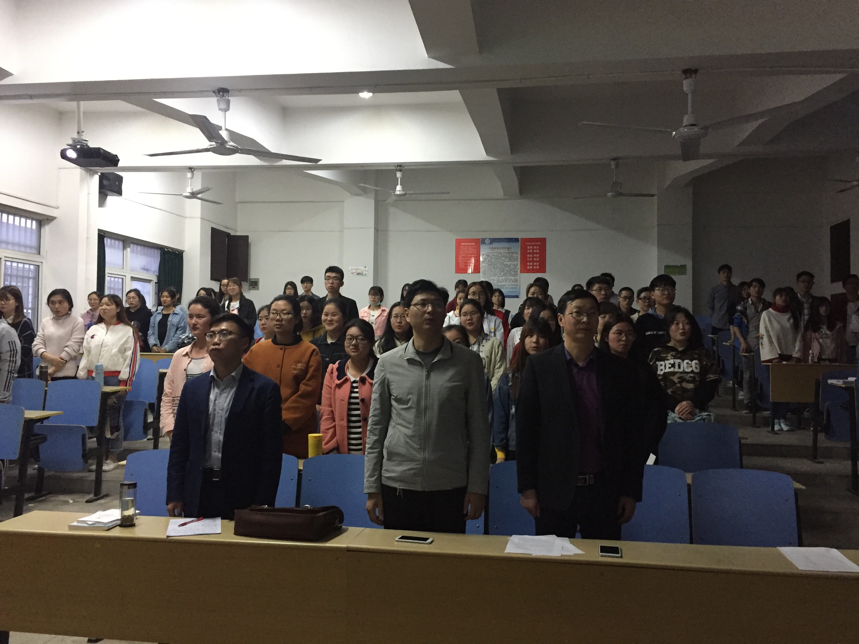 开班式在雄壮的国歌声中拉开帷幕。首先,总支组织委员刘军向大家介绍了本次培训班的日程安排,人员组成、分组及纪律要求。接着,上期优秀学员代表16英语(师范)1班张颖和本期学员代表17英语1班马金凤分别发言。