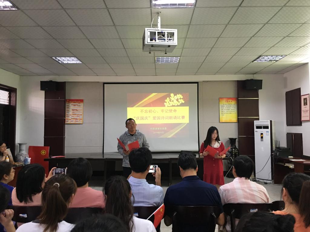 为庆祝中华人民共和国成立70周年,加强爱国主义教育,弘扬爱国主义精神,激发广大师生的爱国热情,营造朝气蓬勃、积极向上的国庆氛围,同时弘扬继承诗歌传统文化,增强民族自信心、自豪感、凝聚力,公司党委于2019年9月29日下午举行“庆国庆”爱国诗歌朗诵比赛。