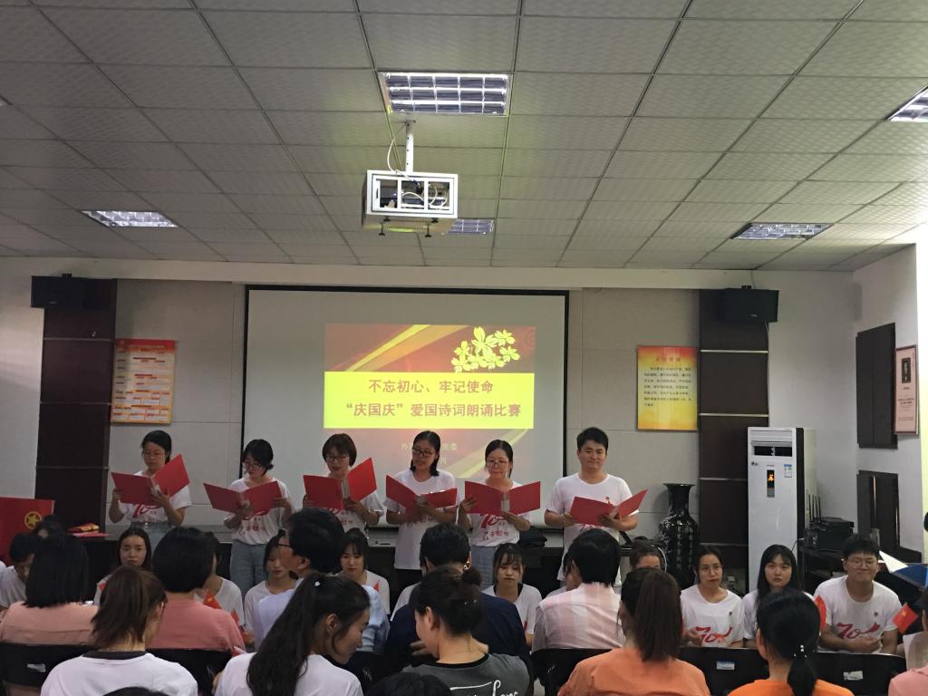 本次“庆国庆”爱国诗歌朗诵比赛共有来自太阳成集团122ccvip5个支部18支队伍参加,参赛选手们以“不忘初心、牢记使命”主题教育为引领,用优美的语言、真挚的情感赞颂党和国家事业的发展及新中国成立70周年来取得的伟大成就,共同祝愿我们伟大祖国繁荣昌盛。