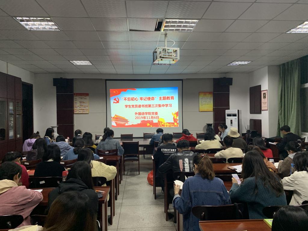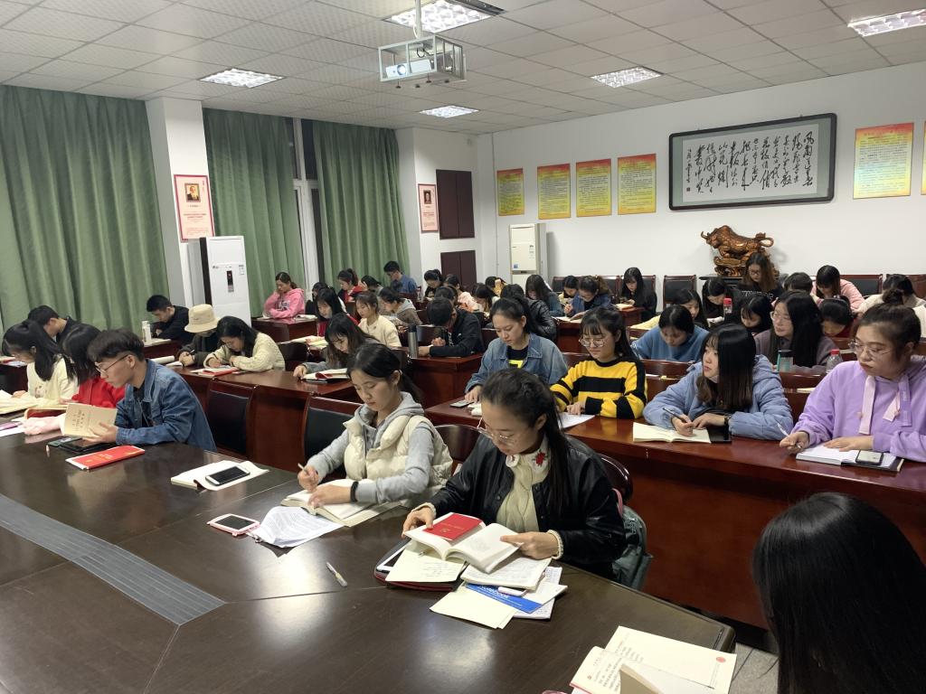 学习会上,杨思铭、石莎莎、贾禹尧3位同学领学了《习近平关于“不忘初心、牢记使命”重要论述摘编》第五、六章。