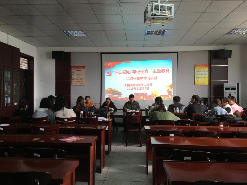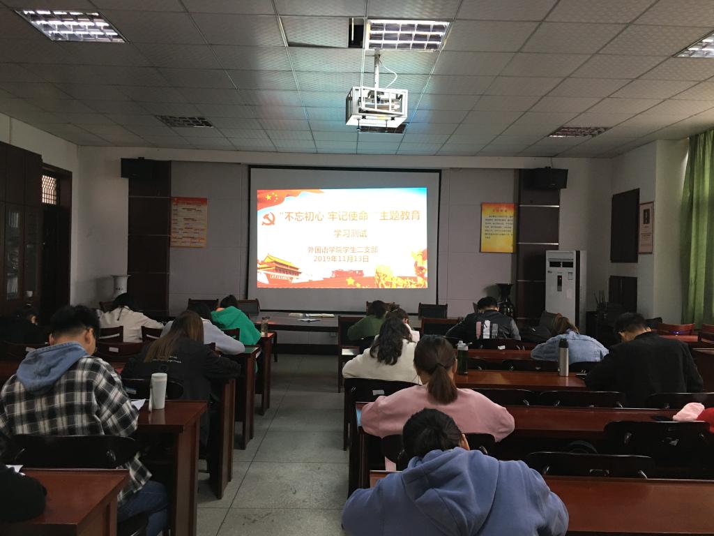 2019年11月13日下午,太阳成集团122ccvip员工二支部举行党员大会,开展“不忘初心,牢记使命”主题教育学习和知识测试活动。会议由支部书记刘军主持。
