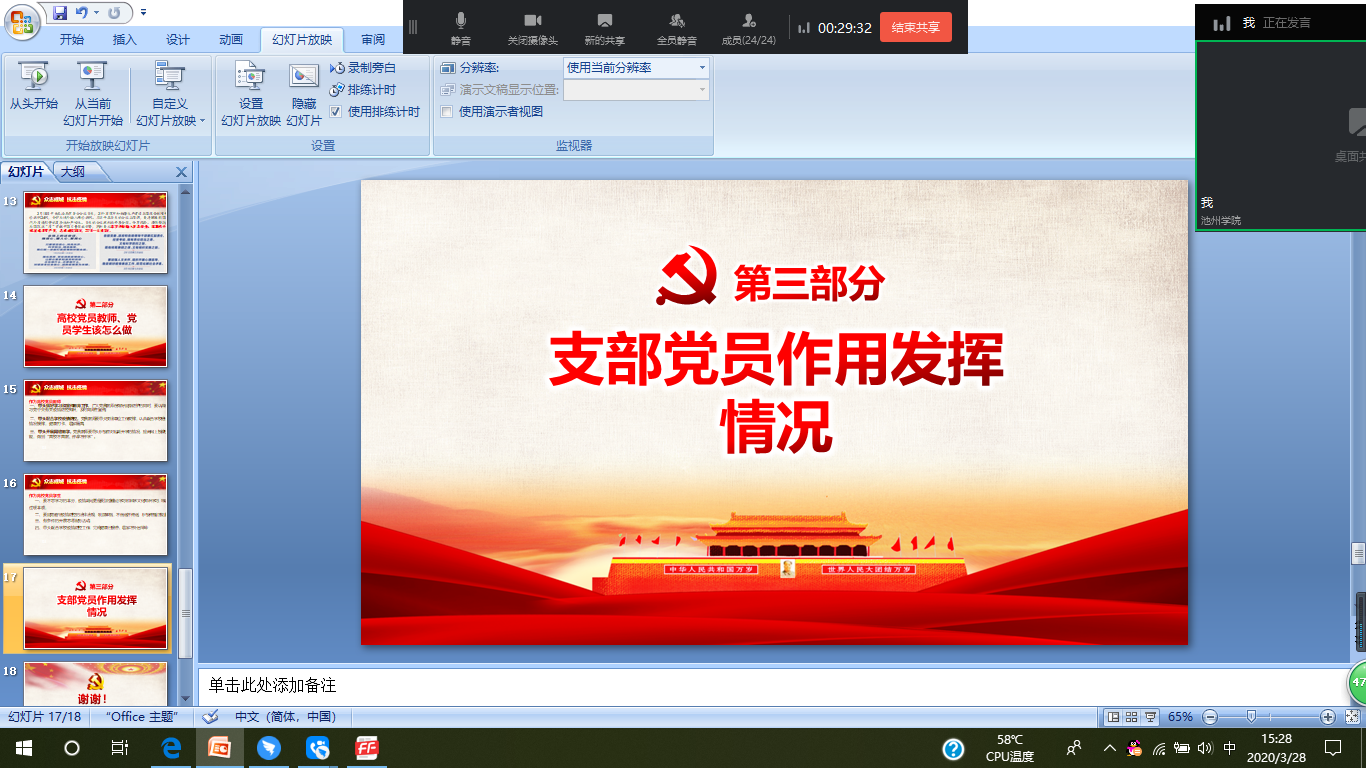 疫情当前,党员先行。在这特殊时期,3月28日下午,太阳成集团122ccvip员工二支部通过钉钉会议视频形式组织开展了疫情防控专题党课活动。党课由公司党委副书记刘军主讲,支部全体党员参加了此次党课学习。