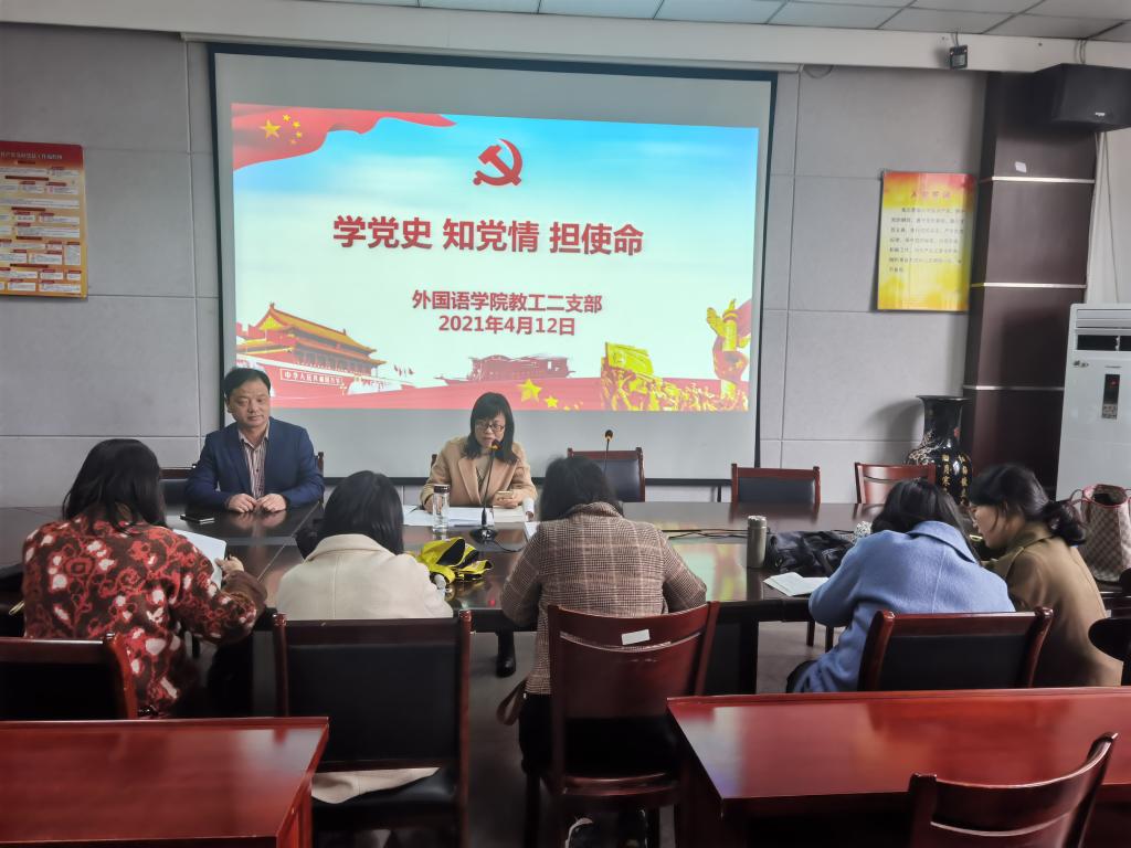 4月12日下午,太阳成集团122ccvip教工二支部在公司会议室举行党员大会,开展“学党史 知党情 担使命”党史学习教育主题党日活动。会议由支部书记李奕华主持。