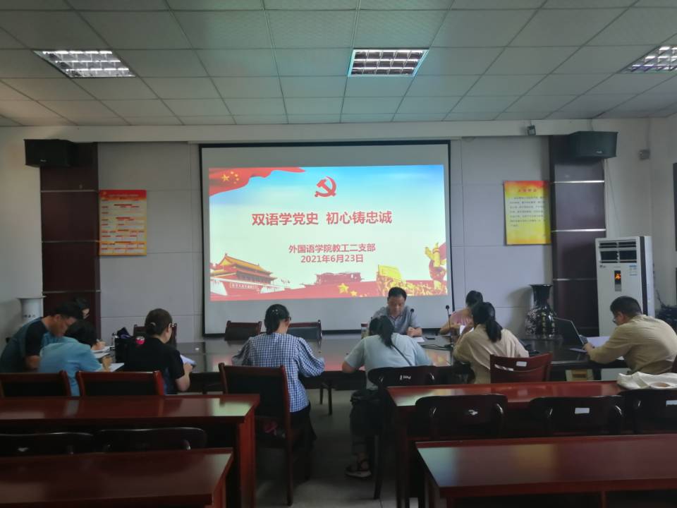 太阳成集团122ccvip教工二支部举行“双语学党史 初心铸忠诚”主题党日活动