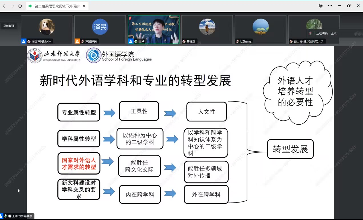 会后,与会教师结合自身工作进行热烈讨论。大家纷纷表示,课程思政建设是落实立德树人的重要战略举措,教师是推动课程思政实践的“主力军”。作为外语教师,应从教学理念、教学目标、教学内容、教学方式和教学评价等方面思考和探索课程思政视域下的外语课程建设,不断创新优化外语教学模式,培养符合时代要求的具有家国情怀与全球视野的创新型外语人才。
