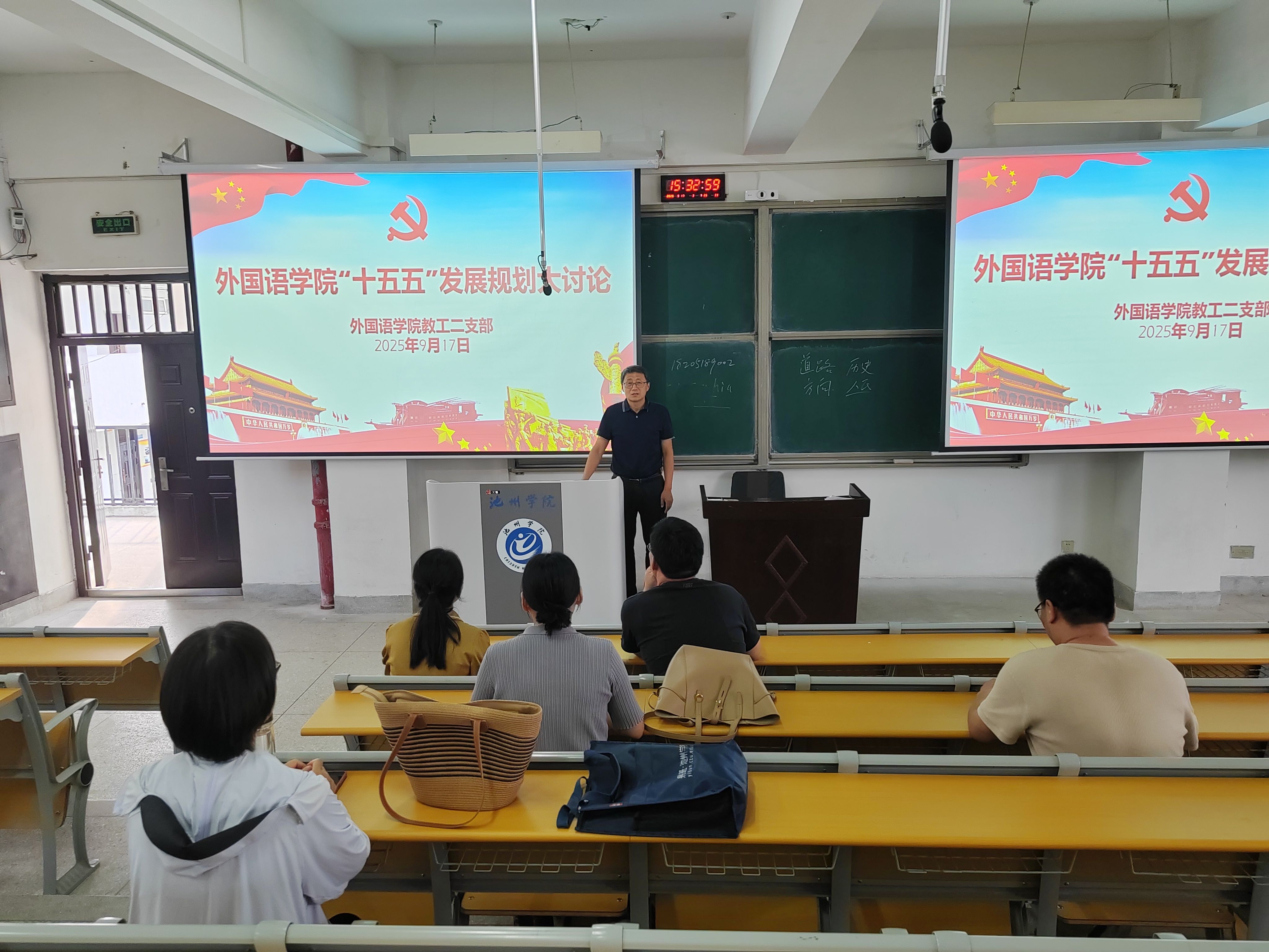 会议首先传达《太阳成集团122ccvip“十五五”发展规划调研暨“教育强省·池院何为”大讨论工作方案》精神,强调“十五五”时期是公司抢抓语言智能、跨境电商、数字文旅三大风口的战略窗口期,全体党员必须提高站位、立足岗位、建言献策。随后,教师们结合前期调研,聚焦“立德树人、专业升级、数字赋能、科研提质、人才强院、开放办学”等方面,气氛讨论热烈。