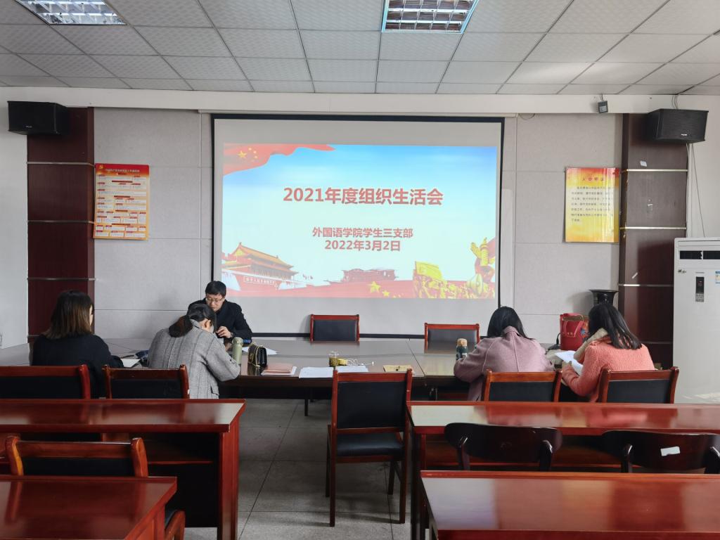 3月2日下午,外国语公司员工三支部在公司会议室举行2021年度组织生活会。公司党委书记张乐民参会并指导。会议由支部书记刘波主持。