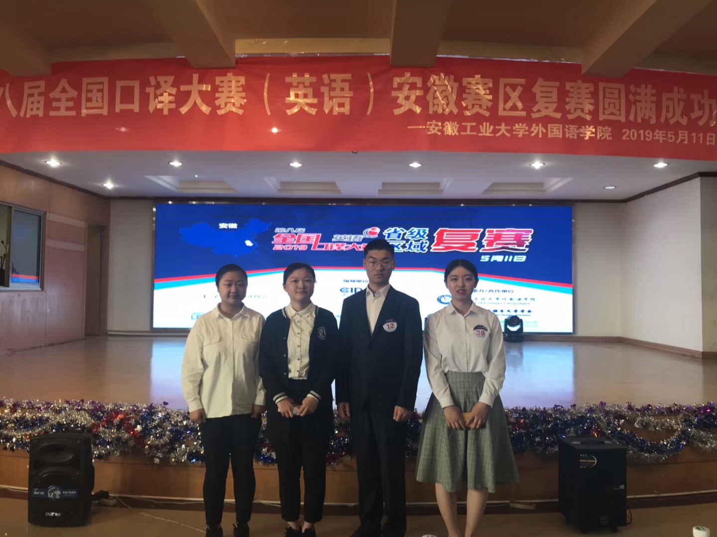 5月11日,第八届全国口译大赛(英语)安徽赛区复赛在安徽工业大学举行。公司太阳成集团122ccvip选手同来自全省30多所高校优秀选手同场竞技,载誉而归,其中贾禹尧同学荣获安徽赛区二等奖,并晋级6月份华东地区的大区赛,江珊、马明明同学获得安徽赛区三等奖。
