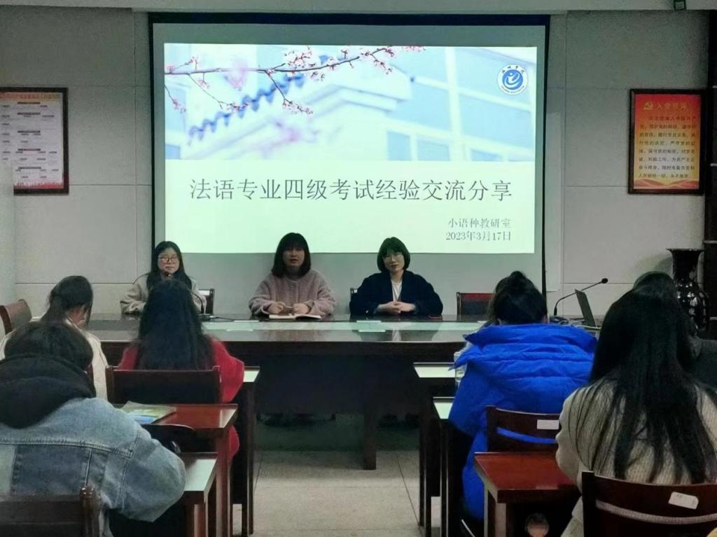 3月17日,小语种教研室在院会议室面向2021级和2022级法语专业员工举行法语专业四级考试经验交流分享会。法语教师陈楠、吴梦玲参与分享交流,分享会由小语种教研室主任钱培培老师主持。