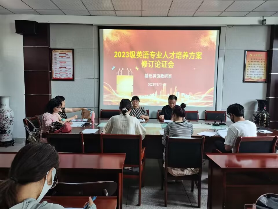6月14日上午,2023级英语专业人才培养方案修订论证会在院会议室举行。基础英语教研室骨干教师、部分优秀员工代表参与论证。论证会由基础英语教研室主任高扬主持,经理余义兵受邀参加。