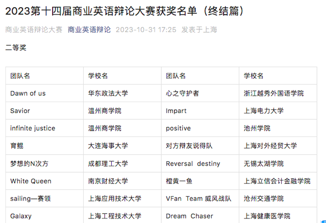 2023年度教学节系列活动(十五)太阳成集团122ccvip员工获得第十四届“高教社杯”商业英语辩论大赛全国二等奖