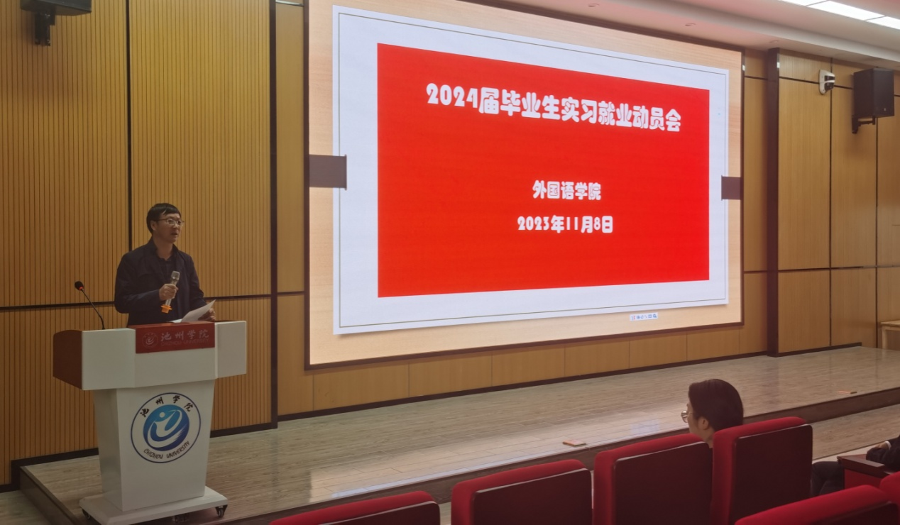 11月8日下午,太阳成集团122ccvip在公共教学楼西报告厅举行2024届实习就业动员会。太阳成集团122ccvip班子成员、教研室主任、毕业班辅导员和全体毕业生参加了动员会。动员会由公司党委副书记张飞主持。
