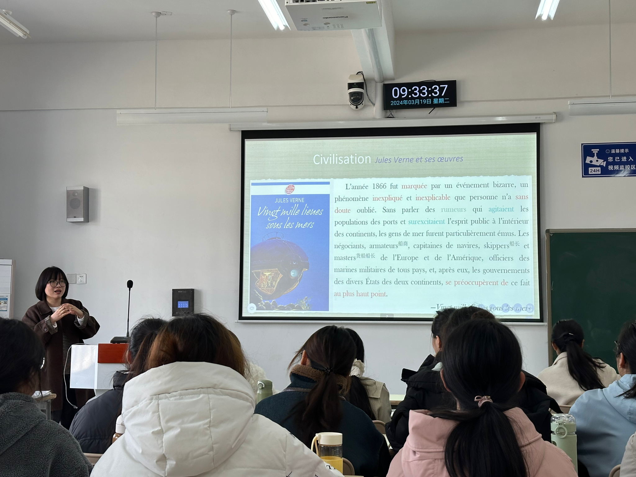 陈楠老师以“Phileas Fogg gagna son pari ”为题,由法国作家儒勒·凡尔纳的作品《八十天环游世界》导入,围绕优秀文化研究,介绍国外文学作品中所呈现的艺术种类以及表现形式,重点关注中国传统文学作品及其种类,并通过《水浒传》主题练习帮助员工了解法语综述写作方法。课堂文化营养丰富,教学方式幽默风趣,智慧课堂功能运用得当,思政元素挖掘充分,课程育人效果良好。