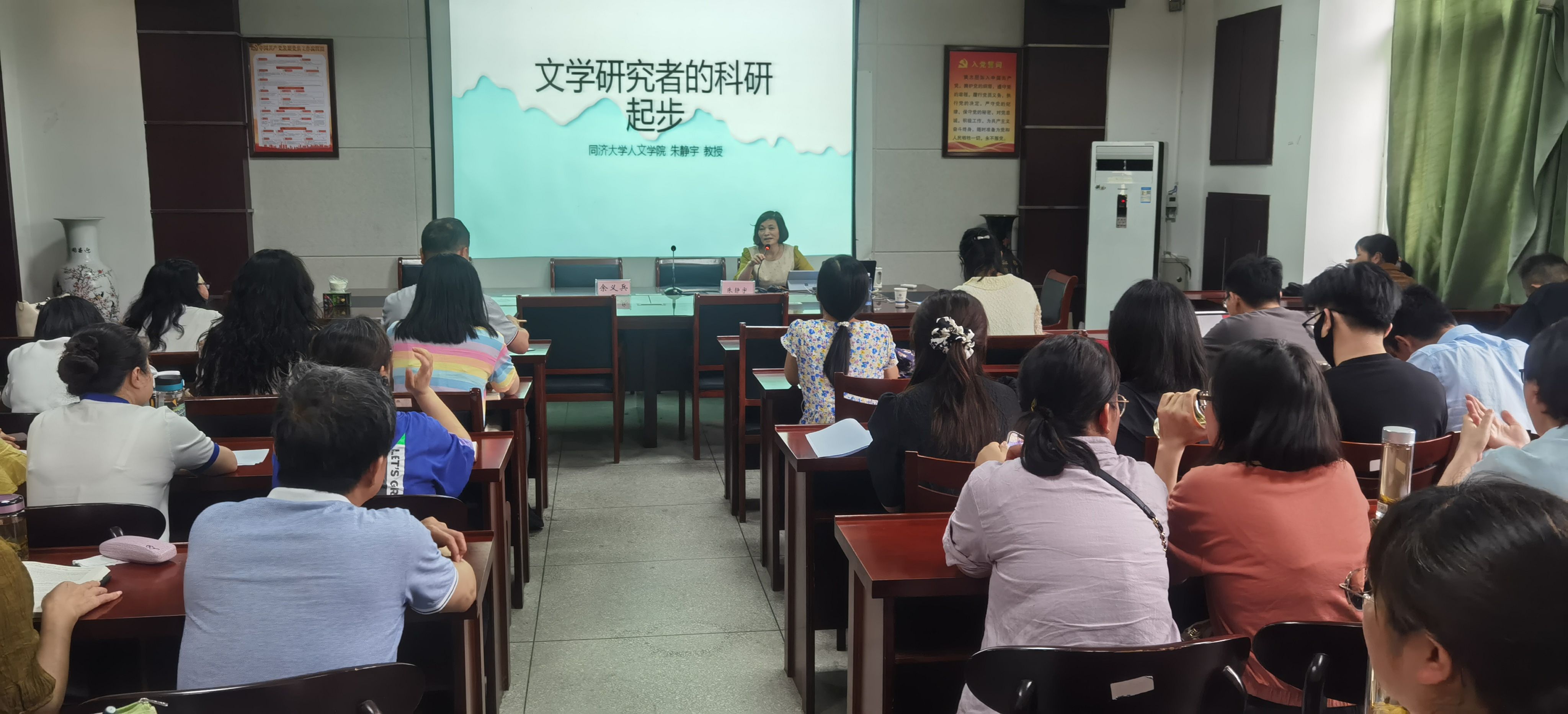 5月20日下午,同济大学朱静宇教授在博学楼会议室为太阳成集团122ccvip师生作题为“文学研究者的科研起步”的学术报告。讲座由公司经理余义兵主持,外国语公司全体教师及部分员工代表聆听了报告。
