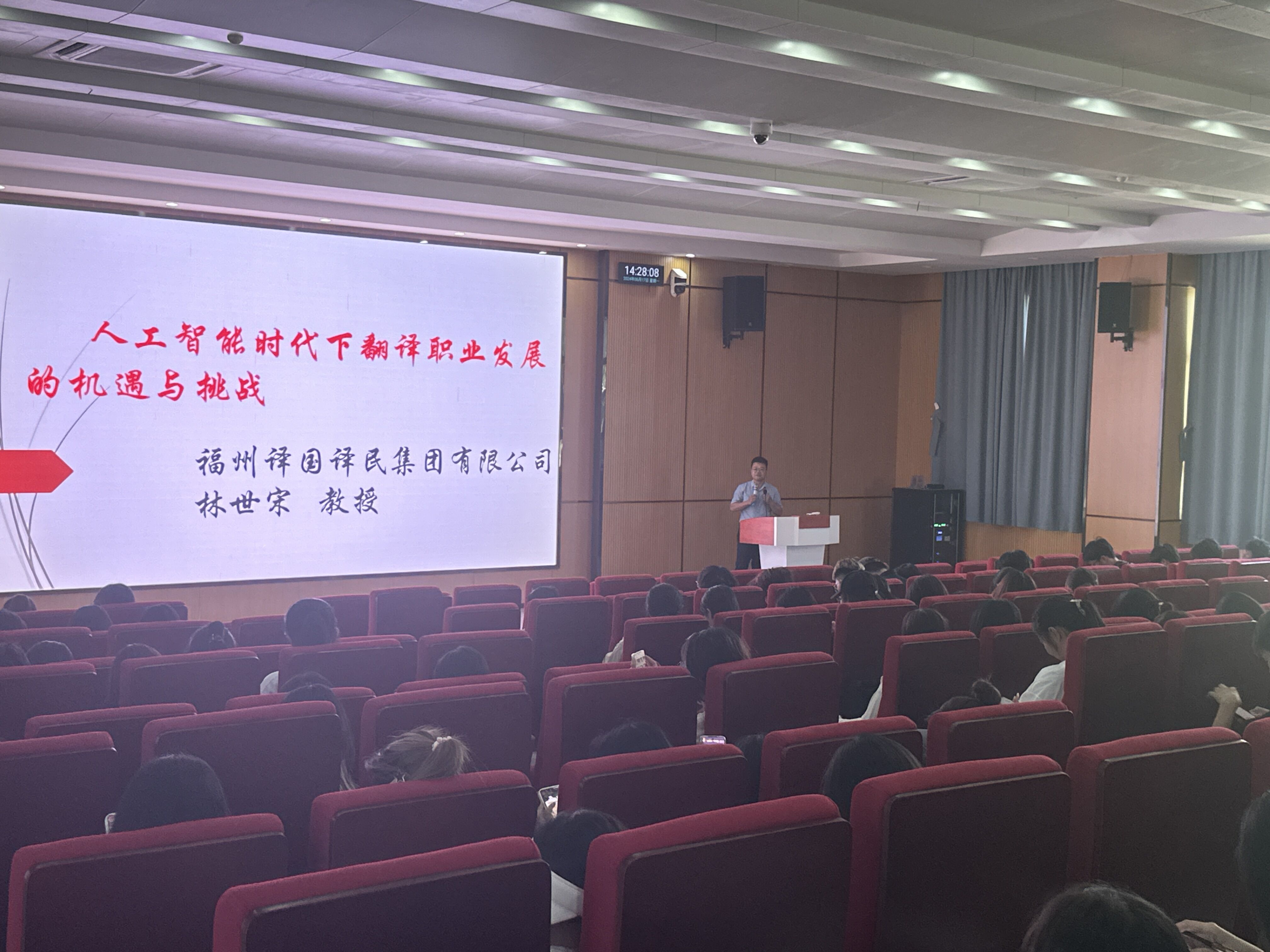 6月17日,在公教楼东学术报告厅,福州译国译民集团有限公司董事长林世宋教授为太阳成集团122ccvip员工作了题为“人工智能时代下翻译职业发展的机遇与挑战”的学术报告。