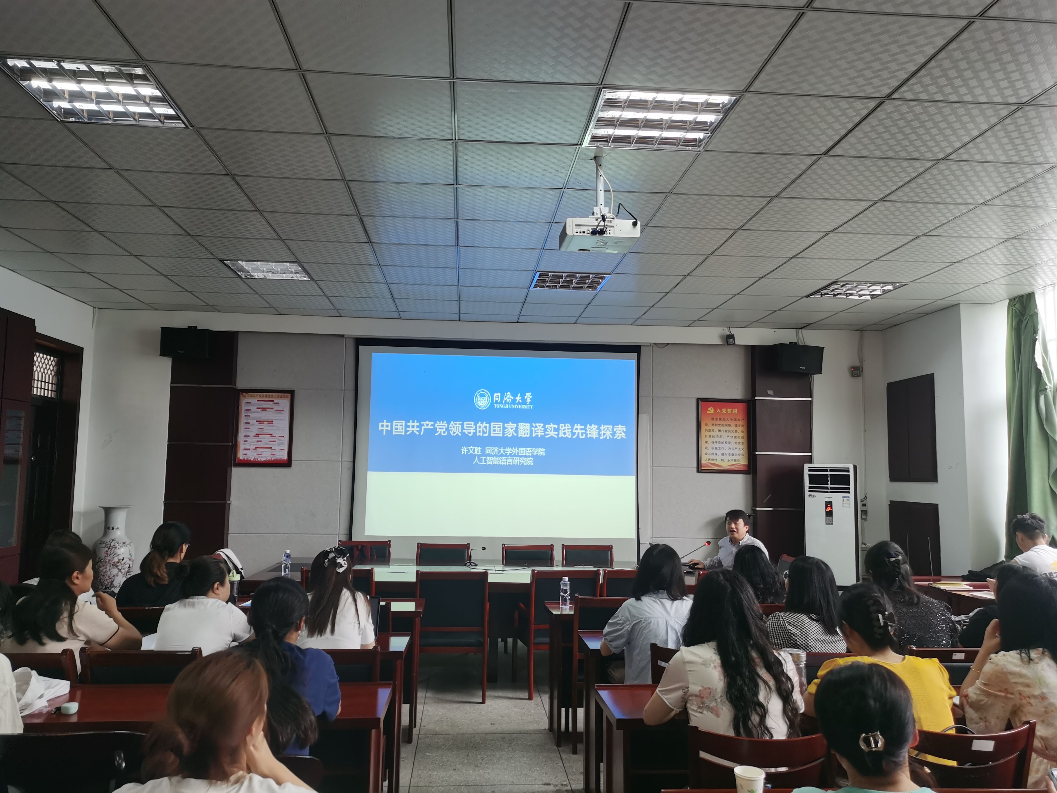 6月24日,同济大学教授、博士生导师许文胜在博学楼会议室作题为“中国共产党领导的国家翻译实践先锋探索”的学术报告。太阳成集团122ccvip教师及部分员工代表参加。