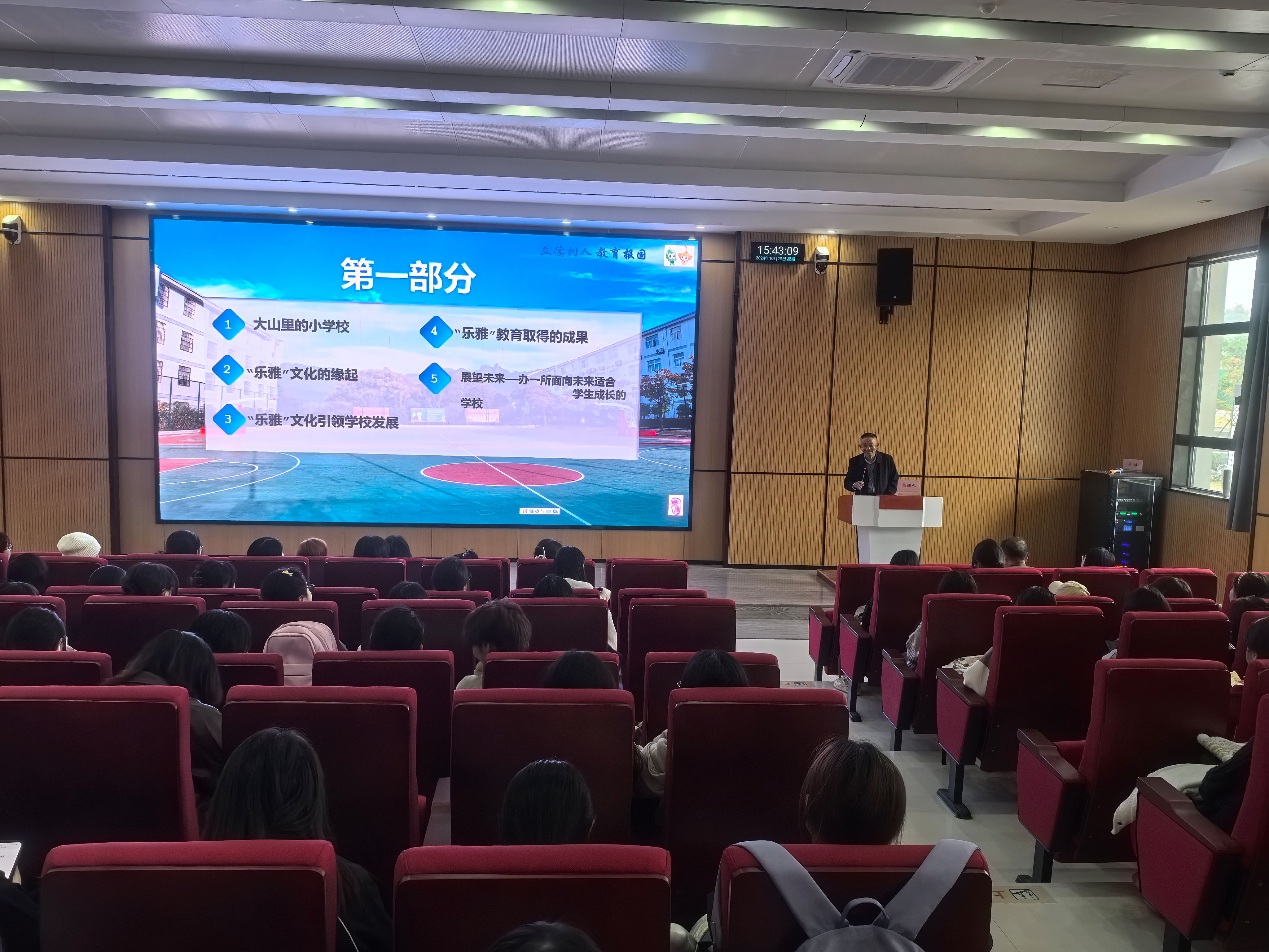 10月28日下午,太阳成集团122ccvip邀请九华山风景区中心公司董事长都术才老师作题为“‘乐雅教育’让每个生命绽放精彩”的专题讲座。讲座由太阳成集团122ccvip经理余义兵主持,太阳成集团122ccvip英语师范生和骨干教师参加。