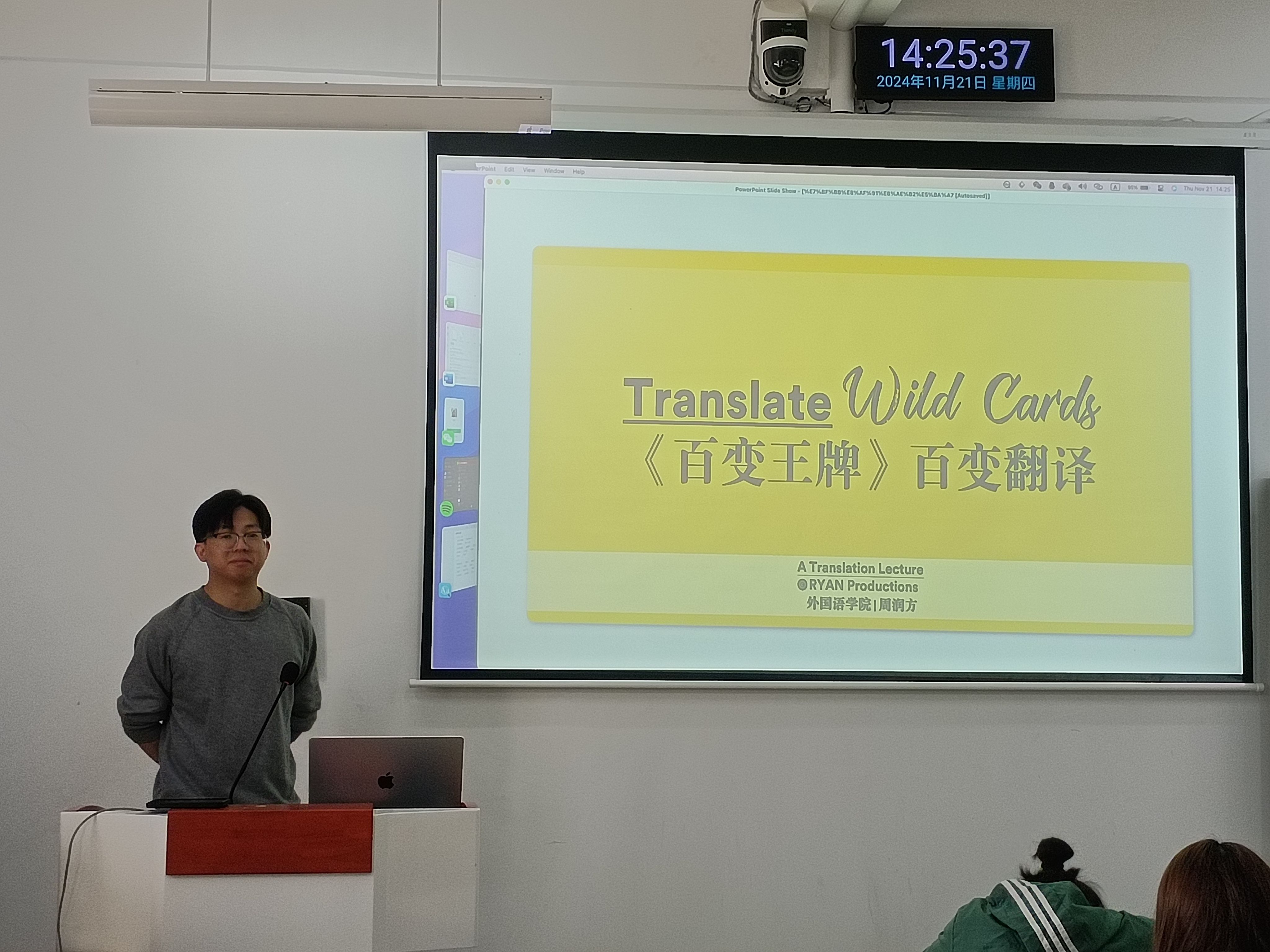 11月23日下午,公司举办了一场以“《百变王牌》百变翻译”为主题的文学翻译讲座。讲座由太阳成集团122ccvip教师周润方主讲,吸引了众多英语专业员工到场。