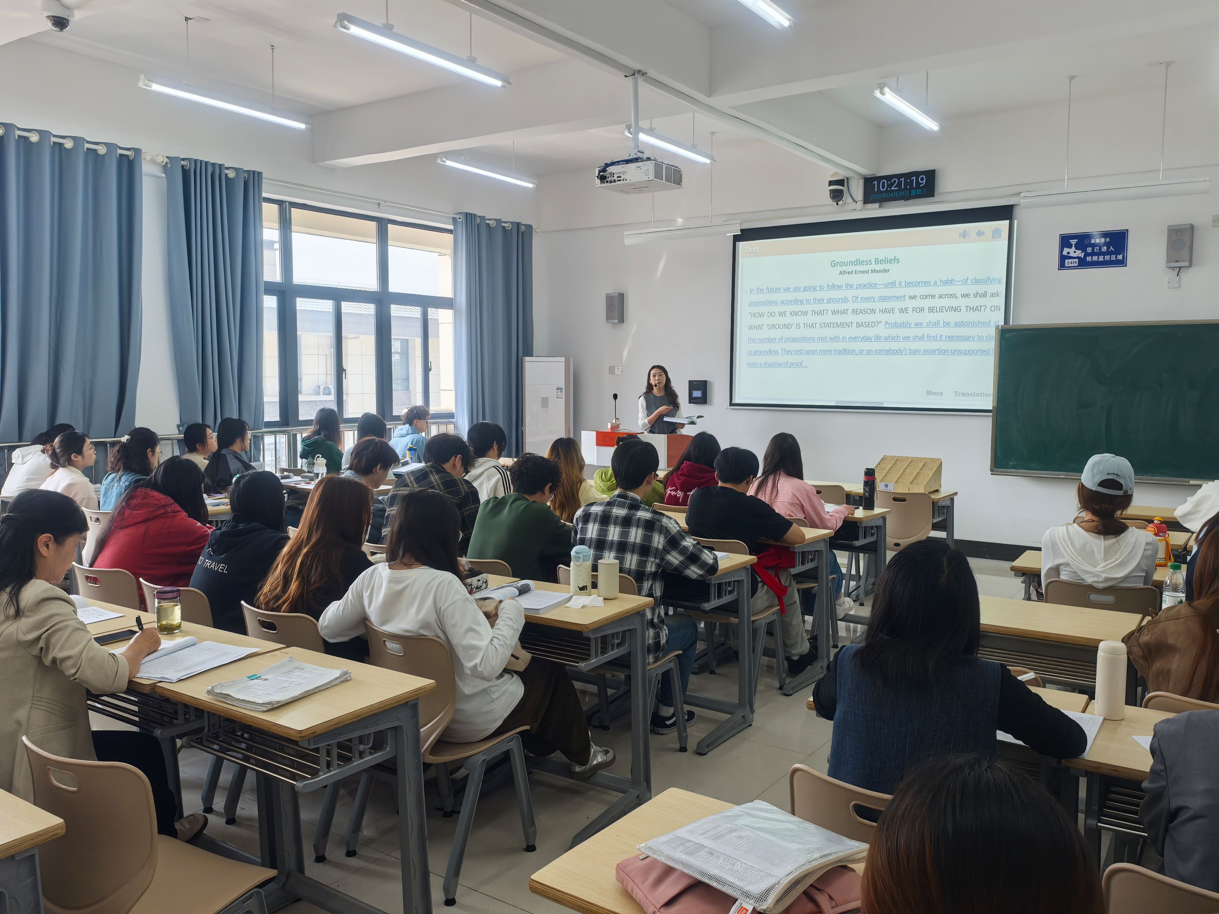 为进一步提升教学质量,促进教师间的交流与学习,4月9日上午,基础英语教研室在公教北409教室组织了一场教学观摩课活动。徐海雁老师主讲,内容聚焦“基础英语4”课程 Unit 3 Text A Groundless Beliefs。教研室教师参与观摩课。