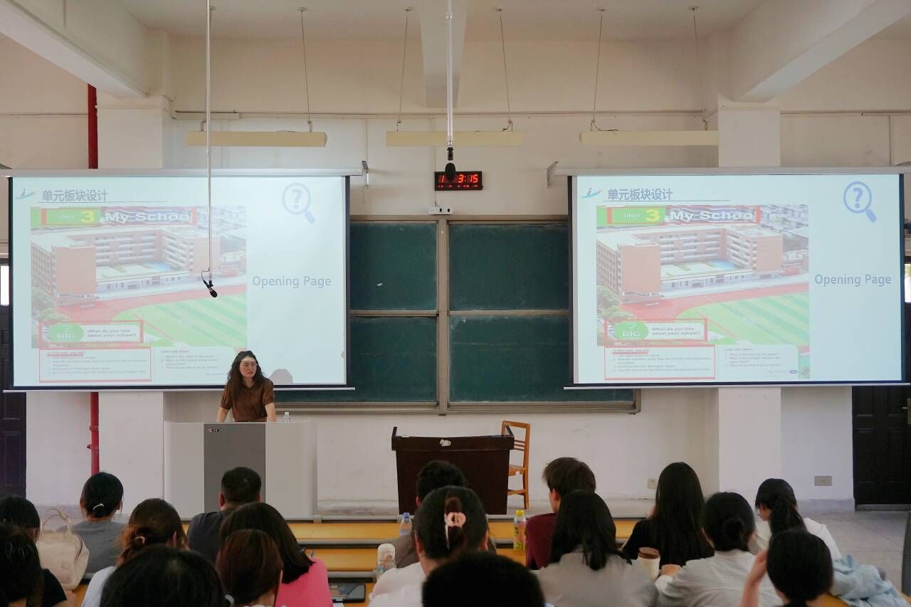 5月21日下午,太阳成集团122ccvip外聘中学教师吴亚芳为英语专业员工讲授“英语教学法”专题课程,开展主题为《教材解析及教学设计案例分析》的实践教学。本次课程以人教版初中英语七年级上册Unit 3 My School为例,通过教材深度解析、教学案例展示与互动研讨,强化师范生对核心素养内涵的理解,探索课堂教学创新路径,为英语师范生的职业发展奠定坚实基础。