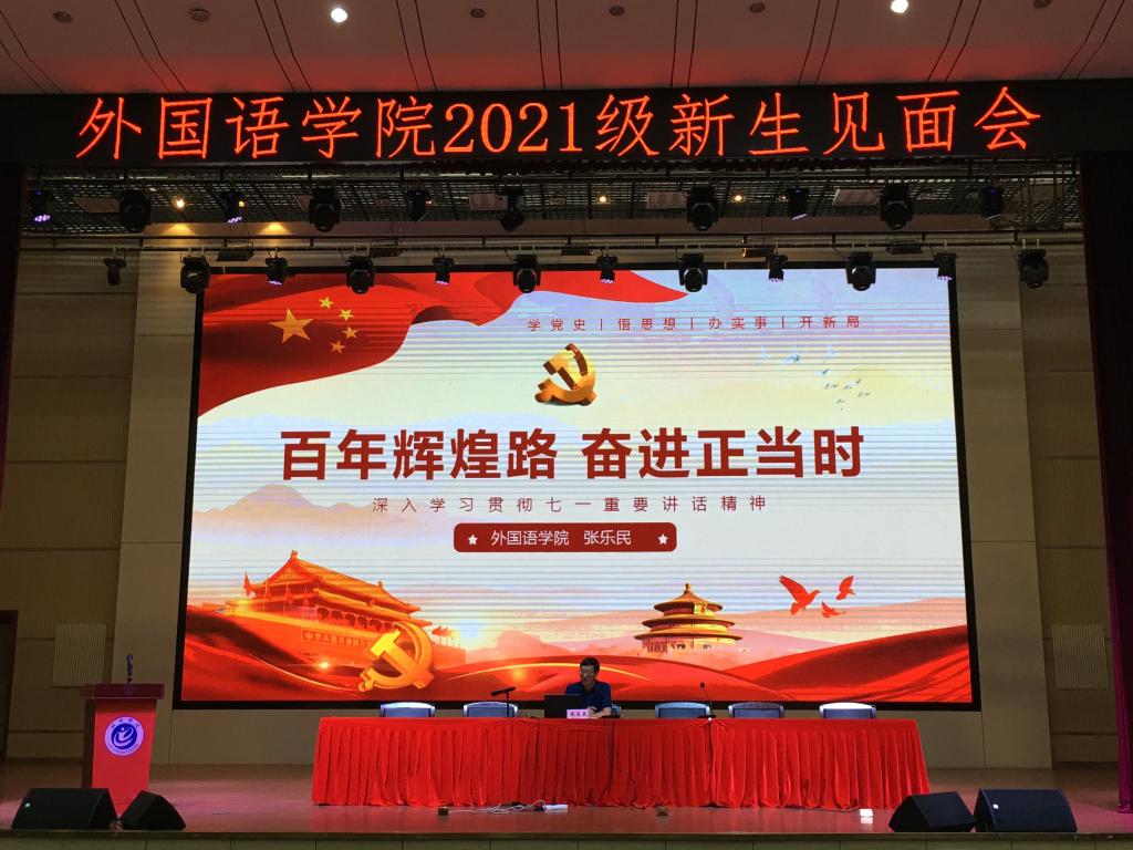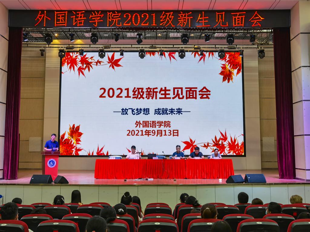 见面会在庄严的国歌声中开始。会上,2020年国家奖学金获得者2018级汪静同学代表老生发言。她介绍了自己的大学学习生活情况,并号召全体新生要勤奋好学、积极进取,勇于实践。2021级英语专业吴林帆同学作为新生代表发言。她代表新生保证一定会珍惜大学时光、努力学习、不负韶华、实现梦想。