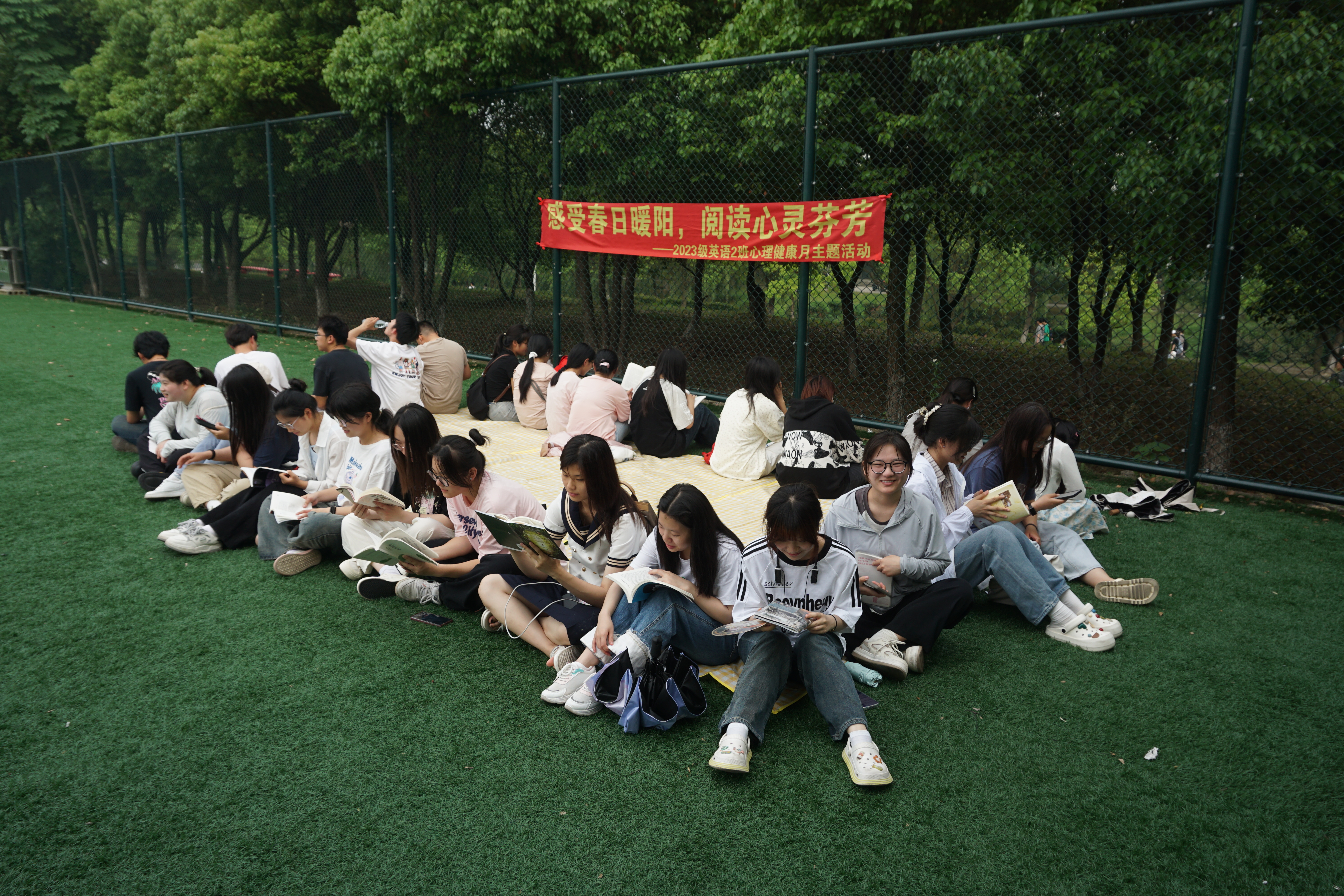 为了营造班级关爱自身、关心他人的良好氛围,让同学们享受阅读带来的乐趣,5月20日下午,2023级英语2班在小操场开展了以“感受春日暖阳,阅读心灵芬芳”为主题的心理健康月活动。此次活动由心理委员黄思怡主持,2023级英语2班全体员工和辅导员程倩倩参加。