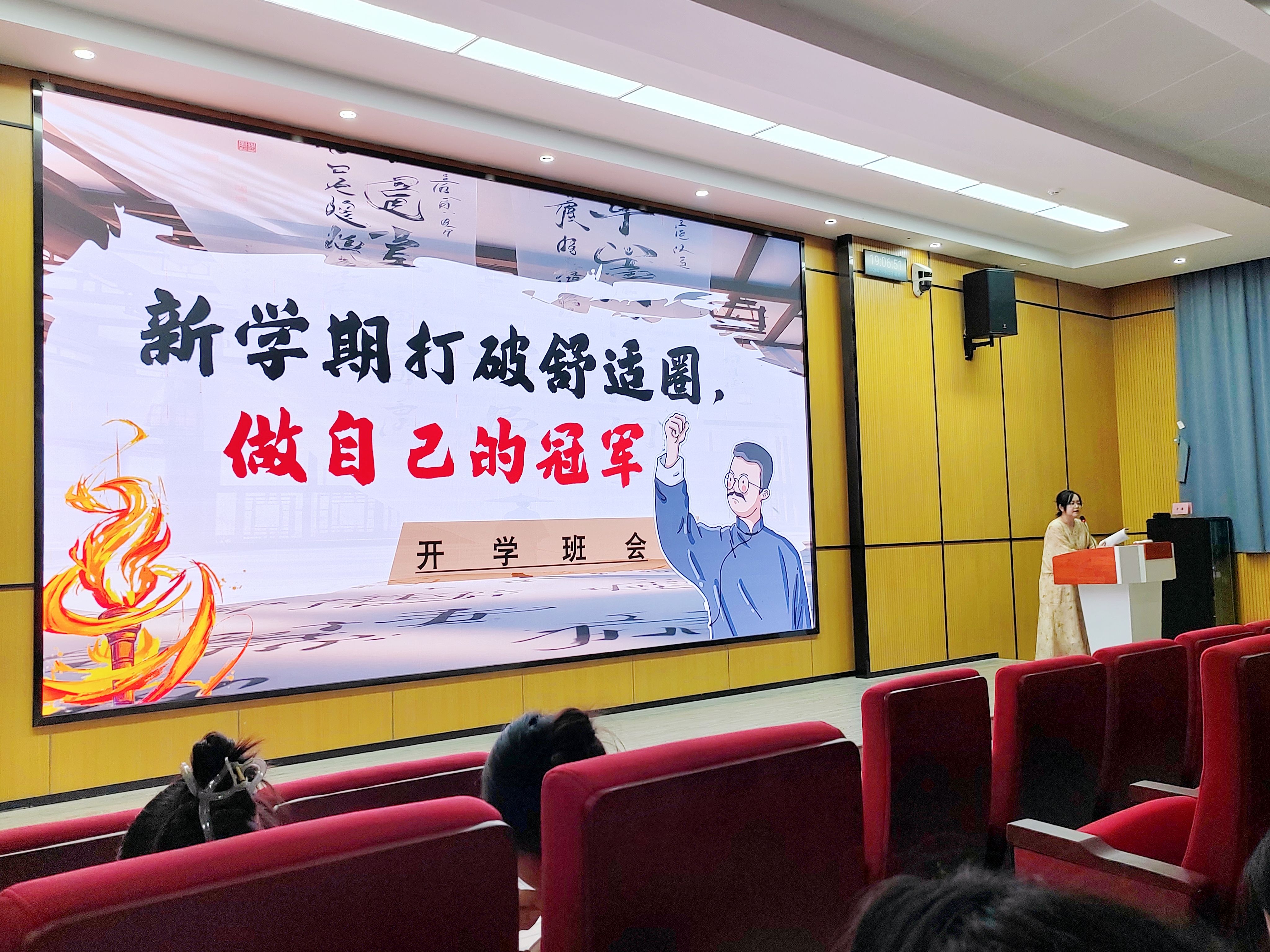 专职辅导员程倩倩老师了解了同学们的假期生活和近期开学状态,分享了“六金王马龙”“网球女王郑钦文”等奥运健儿的励志故事,通过奥运精神来勉励同学们“跳出舒适圈,做自己的冠军”。程老师还特别强调了安全问题。