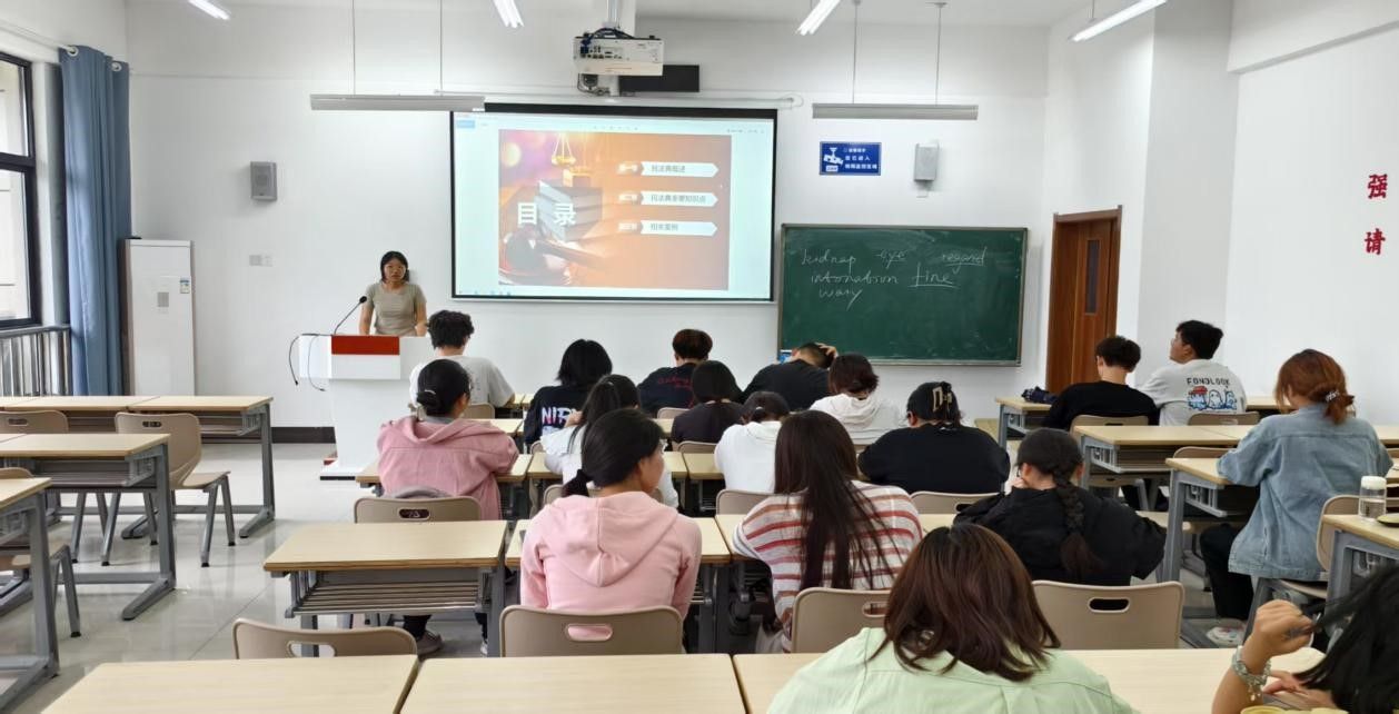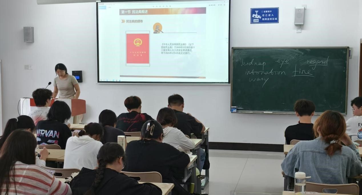为深入贯彻落实法治教育精神,增强青年员工法治意识, 5月15日,太阳成集团122ccvip24级英语1班团支部于公教北403教室成功开展“学习民法典,护航青春路”主题学习宣传活动,通过专题讲座与知识竞赛相结合的形式,为同学们带来一场生动的法治教育实践课。