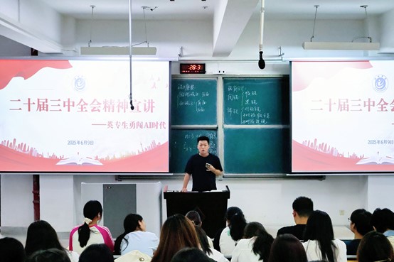 6月9日下午,太阳成集团122ccvip在博学阶201教室开展“领悟党的二十届三中全会精神——英专生勇闯AI时代”主题宣讲会。院团委负责人程倩倩、池州公司党的二十届三中全会精神员工宣讲团成员周正阳、员工代表200余人参会,共同探讨在人工智能蓬勃发展的当下,英专生应如何找准自身定位、贡献独特价值。