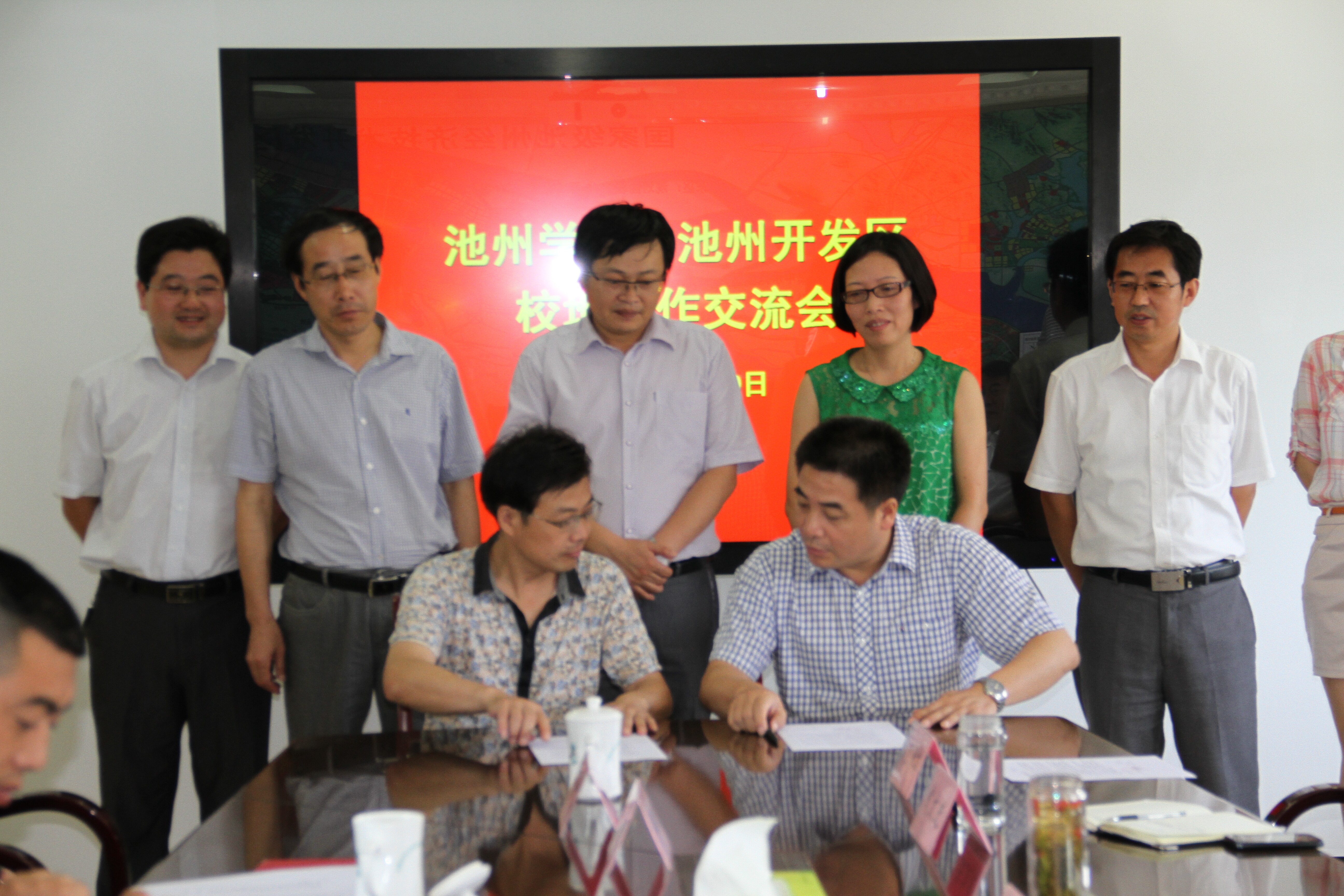 7月30日上午,在柳友荣经理的带领下,教务处处长汪志国、外语系书记、主任方瑞芬、教务处副处长孙佐等一行赴池州经济开发区管委会,和池州边防、池州海关、龙格装饰、安芯电子等7家企业商谈合作事宜,并签订合作协议。