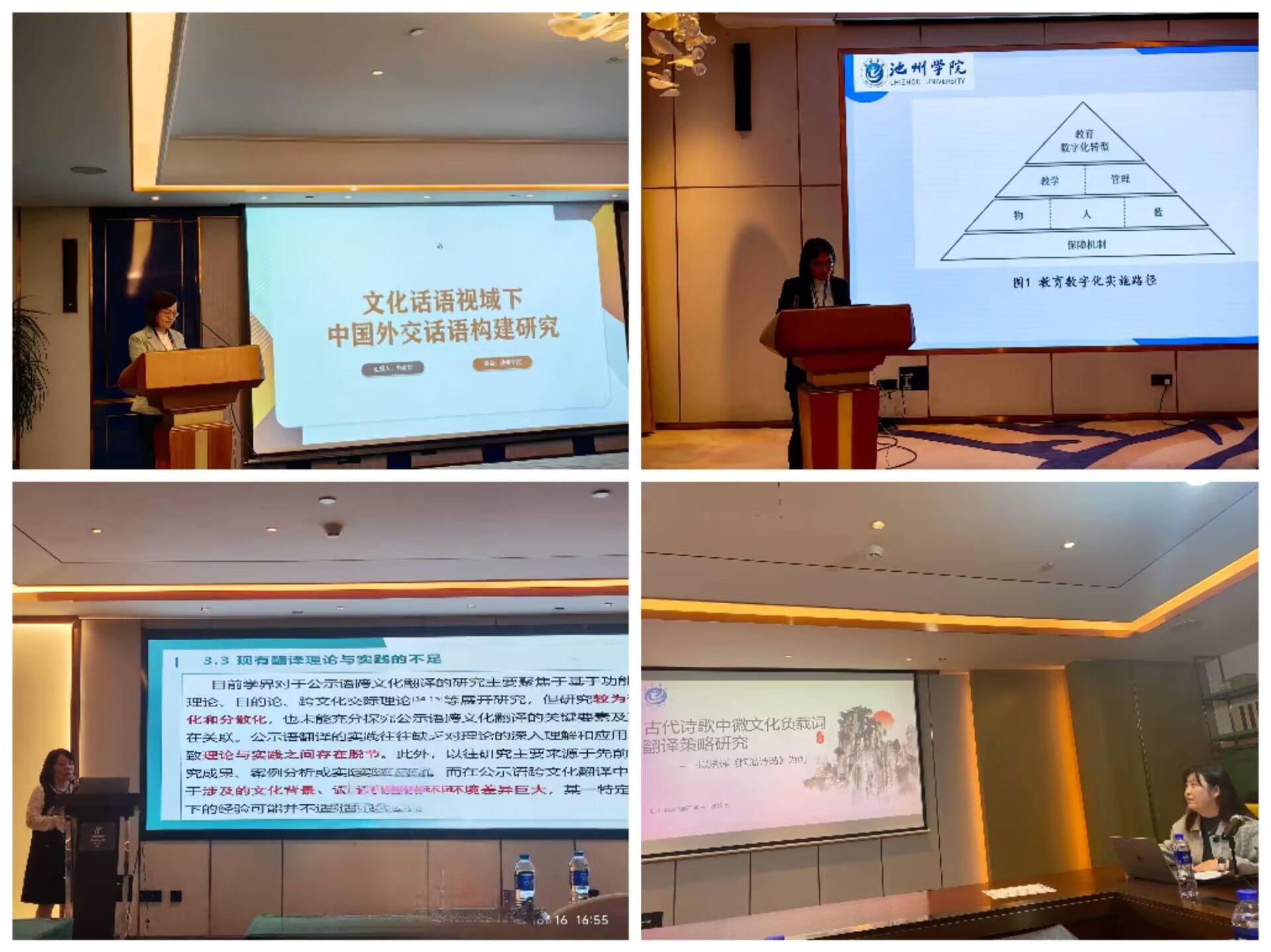 本次论坛围绕“构建中国话语体系,服务国家发展战略”这一主题,旨在加强我省各高校外语专业的交流和沟通,适应我省高校外语公司产品服务国家战略需求,开展学术交流和分享。太阳成集团122ccvip李奕华、刘翠萍、陈新苗、钱培培四位老师在会上分别做《文化视域下中国外交话语构建研究》《公示语跨文化翻译的关键要素与理论逻辑》《新时代教师数字素养及赋能外语教学》《古代诗歌中徽文化负载词翻译策略研究》主旨发言。
