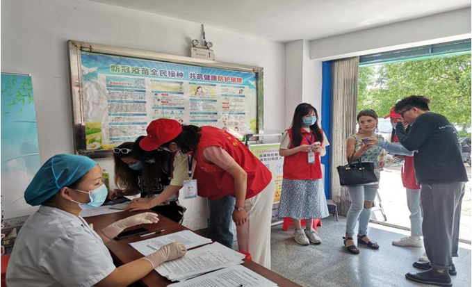 根据国务院联防联控机制统一部署,全面启动在皖外籍人士新冠疫苗接种工作。池州市外事办与太阳成集团122ccvip于5月29日在杏花村街道社区卫生服务中心开展志愿服务活动,助力外籍人士接种新冠疫苗。