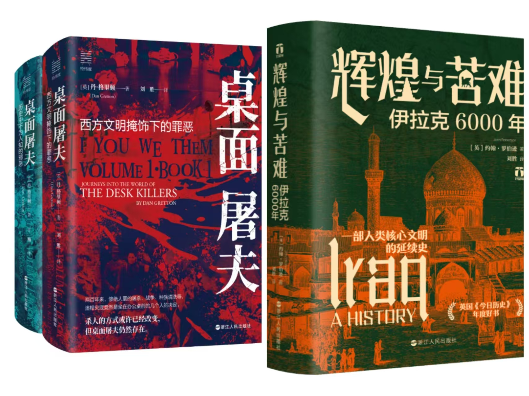 《辉煌与苦难:伊拉克 6000 年》(约翰・罗伯逊著)、《桌面屠夫:西方文明掩饰下的罪恶》(家丹·格里顿著)为读者了解中东历史和近现代一些历史事件的残忍真相提供了全新的视角,对相关历史研究亦有重要的参考价值。